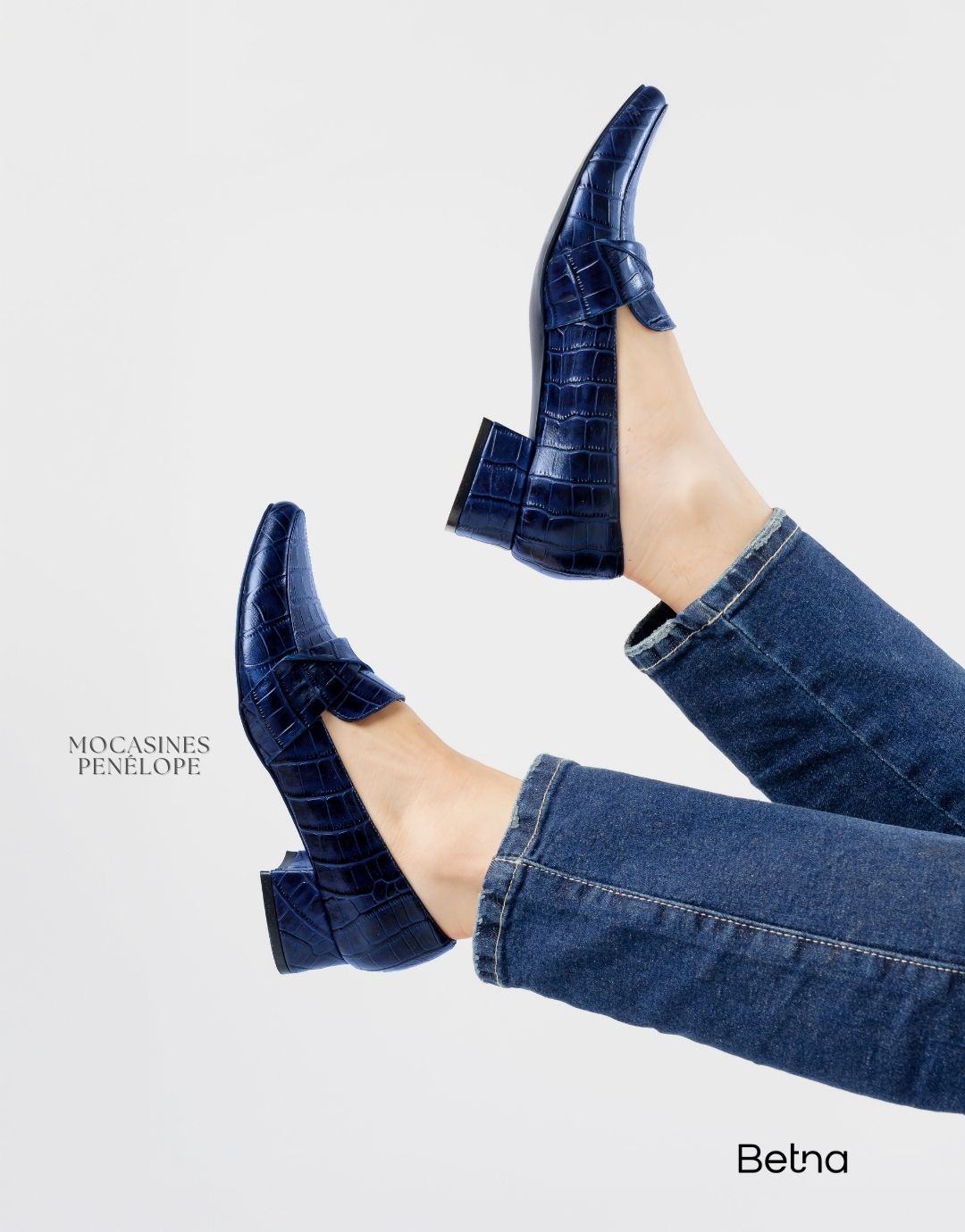 Mocasines de cuero, hechos en cuero croco, taco 3 cm.
