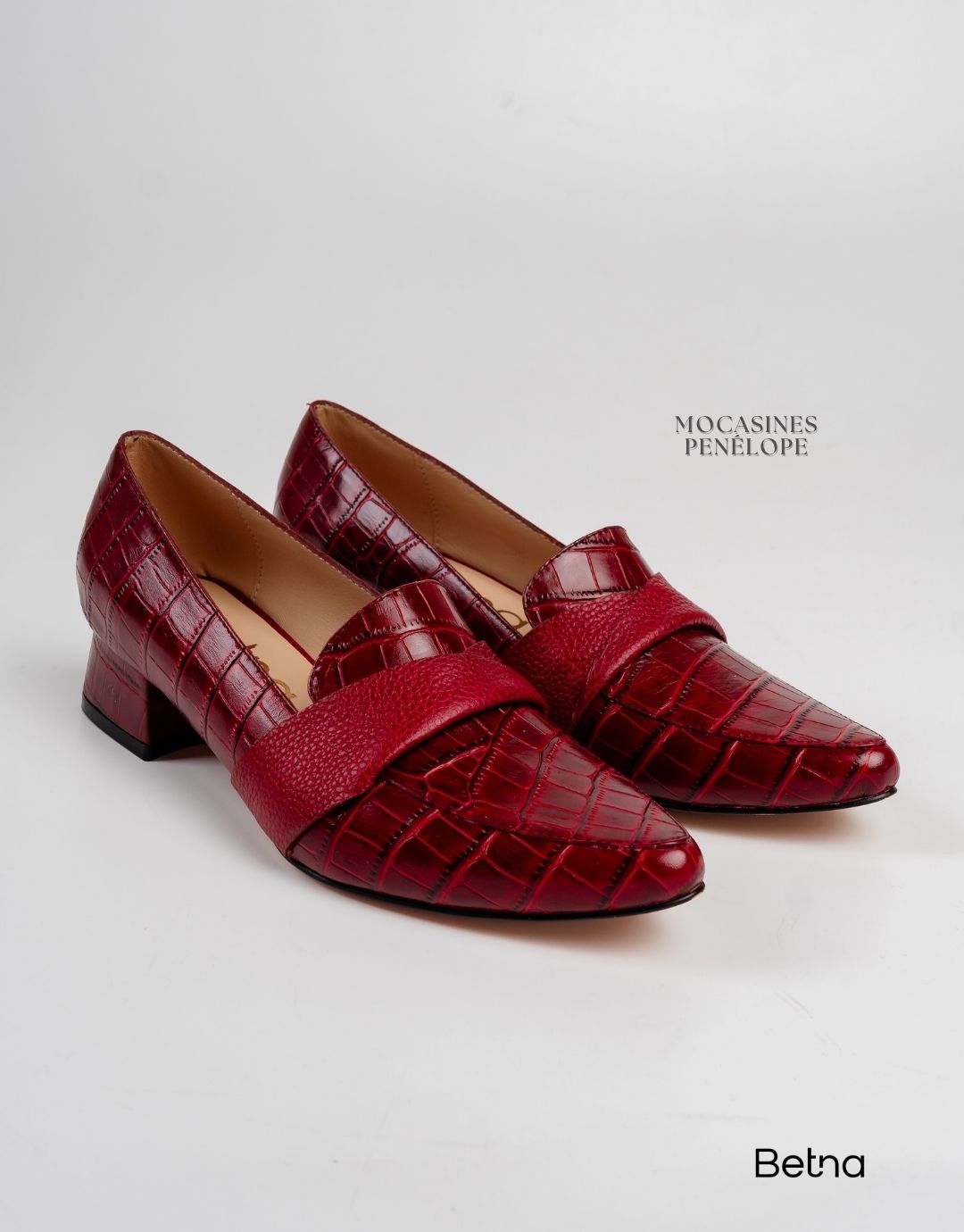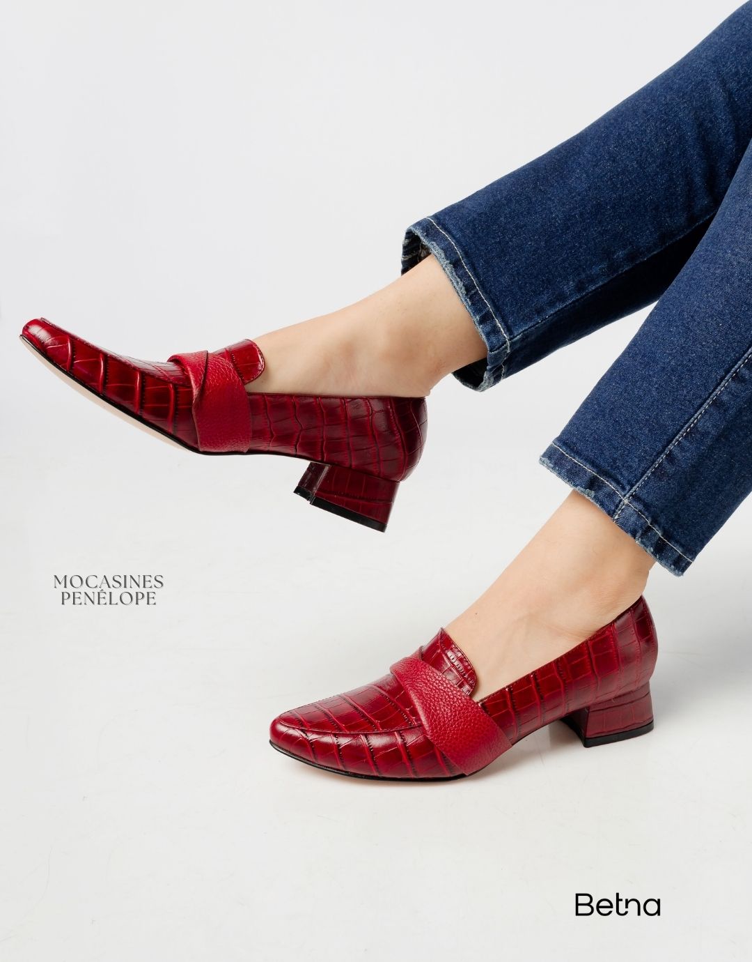 Mocasines de cuero, hechos en cuero croco, taco 3 cm.