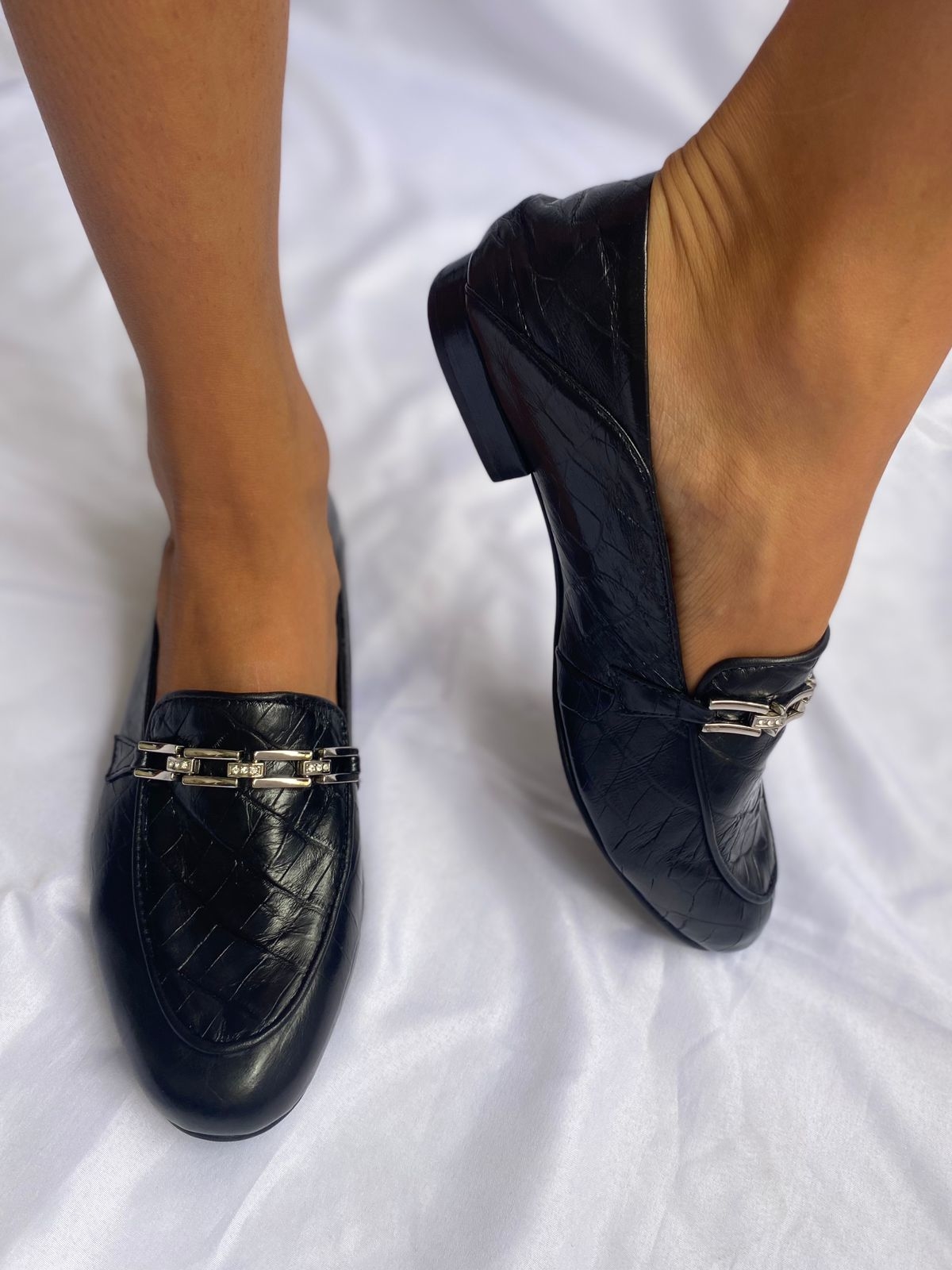 MOCASINES CATA CLASICO NEGRO CROCO-PRE ORDER